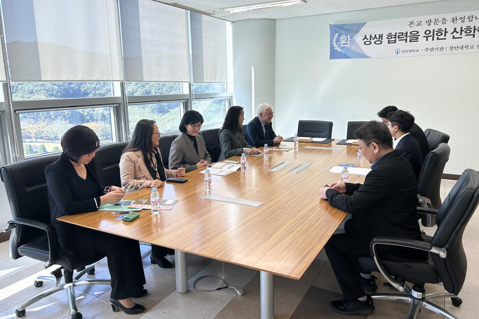 | ▲ 장안대학교-㈜메디브가 산학협력 협약 체결을 위해 논의를 하고 있다. (사진 제공: 장안대학교 산학협력처(단)) |