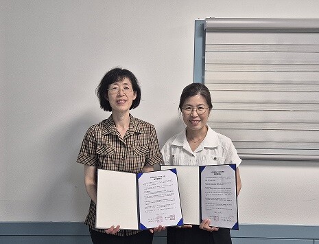 | ▲(왼쪽부터) 정인숙 간호대학장, 유수정 아동보육과장 |
