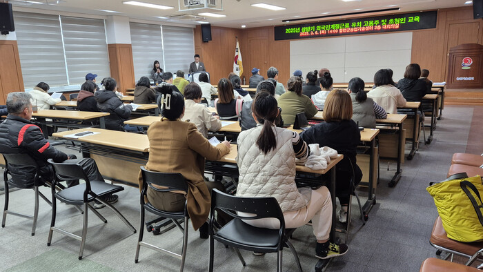 이번 교육은 법무부의 외국인 계절근로자 프로그램 안내와 고용주 준수사항을 알리기 위해 마련됐다. 근로자의 비자 발급에 필요한 서류, 근로자 인권 보호, 근로기준법 및 출입국관리법 준수사항 등을 설명하고, 근로자 고용에 따른 지원사업에 대해서도 안내했다.