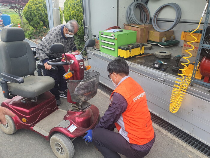 순회 수리 사업은 4월 10일부터 5월 2일까지 16개 읍면사무소를 방문하여 오전 9시부터 11시까지 실시할 예정이며, 고장 난 전동휠체어, 수동휠체어, 목발, 지팡이 등의 장애인보장구와 노인용 실버카를 무료로 수리해 준다. 휠체어 타이어, 팔 패드, 브레이크, 시트, 발판, 튜브 등 낡아서 제 기능을 발휘하지 못하는 보장구의 부품을 무료로 교체해 주며, 부품단가가 5만 원 이상인 경우 초과 비용을 본인이 부담해야 한다. 동지역에 거주하는 장애인은 연중 상시 장애인종합복지관을 방문하여 같은 서비스를 받을 수 있다.