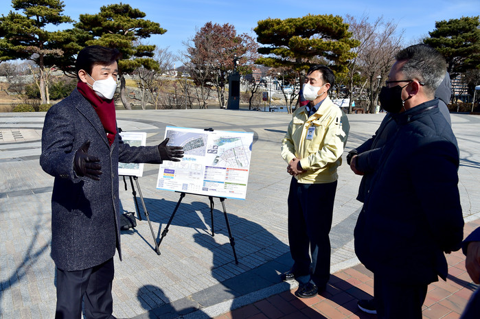 진주시(시장 조규일)는 지난 3일 강남로 보행로 및 가로시설물 정비공사 현장을 방문해 현장상황을 점검했다.