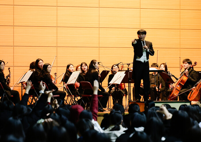 특히, 학생들의 즉석 지휘에 맞춰 교향악단이 연주하는 ▲지휘이벤트는 공연 회차마다 참여하려는 학생들이 앞다퉈 손들 만큼 인기였다. 학생들의 익살스러운 지휘가 이어진 무대는 밝고 순수한 웃음과 쾌활함이 가득했고, ▲음악전공 학생과 선생님이 참여한 협연도 마련되어 잔잔한 감동을 주었다.