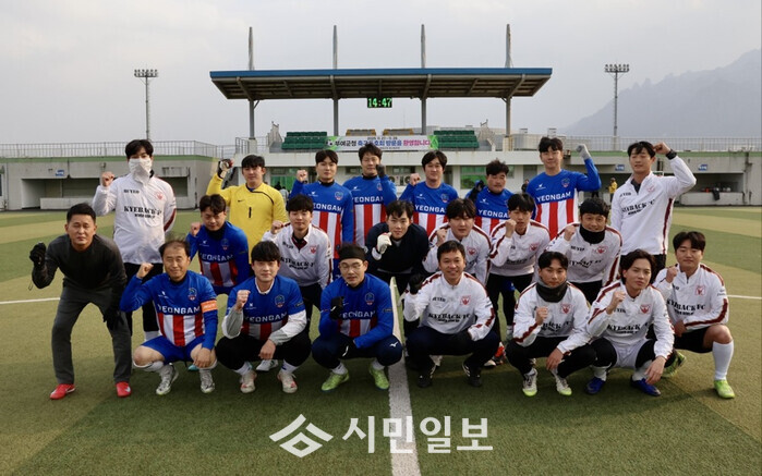 | ▲ 영암군, 충남 부여군 축구동호회와 축구 교류대회 개최 기념촬영 / 영암군 제공 |
