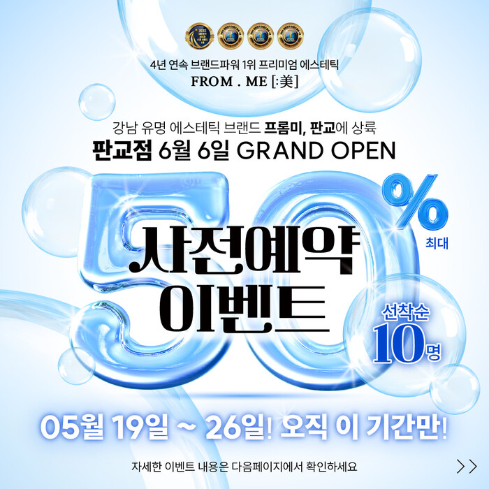 프롬미는 이번 06월 06일 오픈하는 판교점 포함하여 총 12개의 지점을 보유하고 있으며, 토탈뷰티 프랜차이즈 전문 브랜드로써 평균 10년 이상 경력의 전문진과 프라이빗하고 위생적인 1-2인실, 일회용 해면 및 비품 사용, 자체 개발 비건 제품 사용으로 고객님들에게 최고의 서비스 제공 및 최고의 만족도를 선물하며 많은 사랑을 받고 있는 브랜드로 알려져 있다.
