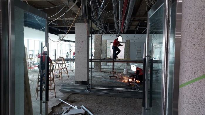 구미시 회계과에서 발주한 선산출장소 내부 리모델링 공사는 9월 중순부터 11월 까지 공사기간을 단축한다는 명분으로 근무자인 공무원의 안전과 건강은 무시한 채 하루최소 8시간 근무하는 민원실 공무원은 마스크를 쓴채 용접 불꽃과 비산먼지 및 소음에 시달리며 근무하고 있다.