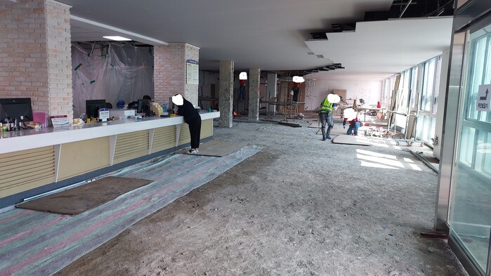 통상 내부 리모델링 공사는 일부 격벽 설치로 공사장과 분리하여 기존 업무는 가능하도록 하면서 공사가 진행되어야 하지만 시는 이러한 방식으로 하지 않고 전체 1층 건물에 공사가 진행되는 중에도 탁 트인 내부 옆에서는 민원업무 공무원이 근무하도록 했다.