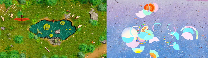 빔프로젝터 5대로 약 130㎡ 너비의 하모와 함께하는 물놀이장, UAM을 테마로 하는 진주시의 하늘, 공룡천국, 이성자화백 작품을 테마로 4개 배경에 따라 라이브스케치와 사용자 반응형 체험 기능을 더했다.