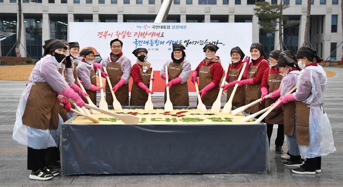 또한, ‘경북의 힘으로 국민 대통합’ 퍼포먼스에서는 시군 대표팀, 이주민 여성, 사회적 약자, 청년 기업인, 봉사단체 대표가 참여해 김장김치의 재료를 버무리는 퍼포먼스를 통해 다양한 재료가 어울려 맛있는 김장김치가 되듯, 지역의 다양성과 창의성을 융합한 확실한 지방시대로 국민 대통합 시대를 열어가자는 경북도민의 결의를 다졌다.