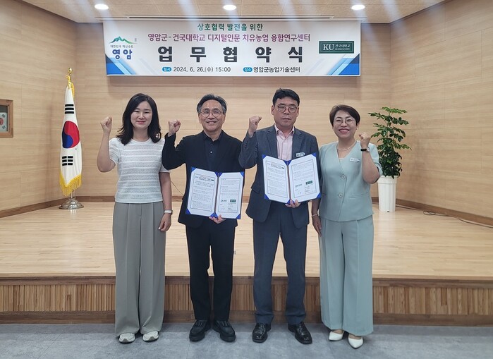 영암군농업기술센터와 건국대학교 디지털 인문기반 치유농업융합연구센터는 이날 협약에서 치유농업 분야 공동연구, 정보교류에 나서기로 했다.