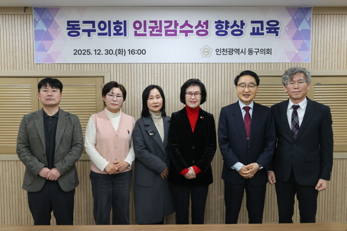 | 동구의회 인권 감수성 향상 교육 참가자들이 포즈를 취하고 있다. [사진=동구의회] |