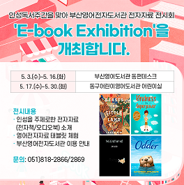 [부산=최성일 기자] 부산광역시립중앙도서관(관장 차종호) 분관 부산영어도서관은 인성독서주간을 맞아 5월 3일부터 16일까지 인성 관련 추천 영어전자자료를 소개하는‘인성 E-book Exhibition’을 개최한다.