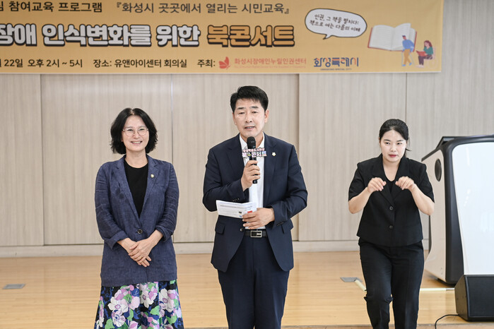 [화성=송윤근 기자] 경기 화성특례시의회(의장 배정수)는 22일 오후 2시, 유앤아이센터 2층 세미나실에서 열린 ‘장애인 인권 북콘서트’에 참석해 시민 모두가 차별 없이 존중받는 사회를 위한 인식 개선에 뜻을 모았다.