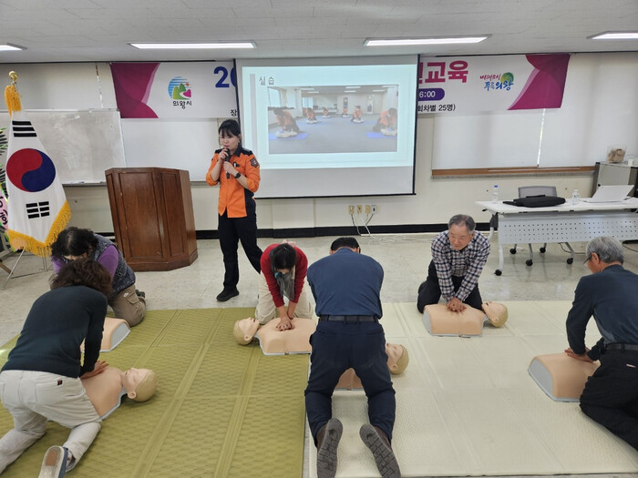 교육에서는 ▲마네킹을 활용한 심폐소생술 ▲기도 폐쇄 시 하임리히법 ▲농기계 안전 수칙(골절·절단 등) ▲사고 발생 시 초기 대응 절차(현장 안전 확보–119 신고–응급처치) 등이 중점적으로 다뤄졌다.