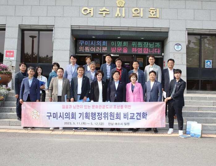 [구미=박병상 기자] 경북 구미시의회 기획행정위원회(위원장 이명희)에서는 제267회 임시회 기간 중인 5. 11.(목) ~ 5. 12.(금) 2일간에 걸쳐 문화관광 자원 개발 방안 연구를 위해 ‘여수시의회, 여수아르떼뮤지엄, 여수해상케이블카’를 방문했다.