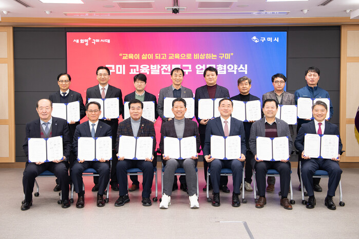 [구미=박병상 기자] 경북 구미시는 지난 18일 시청 대회의실에서 구미시 의회, 구미교육지원청, 지역대학, 고등학교, 지역 기업, 단체 등 15개 기관과 교육발전특구 시범지역 지정에 공동 대응하기 위한 업무협약을 체결했다.