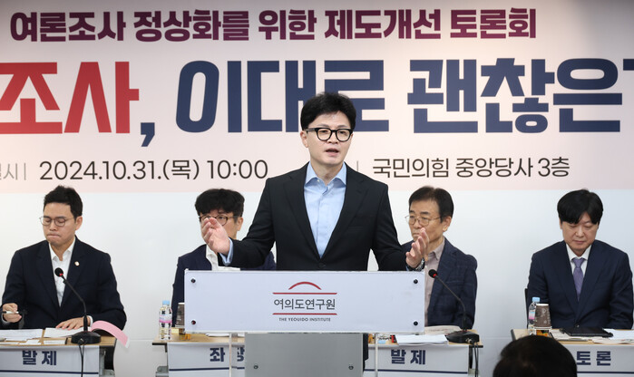 한 대표는 아울러 "우크라이나 전쟁에 북한이 참전한 상황에서 더불어민주당 측 반응이 이해하기 어렵다"며 "북한을 비판하는 게 아니라 대한민국 정부를 의심하고 불신하고 국민 불안을 키우는 데 앞장서고 있다"고 지적했다.