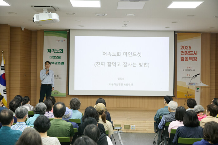 이수희 구청장은 “정희원 교수의 강의를 통해 저속노화에 대한 구민의 관심과 실천 의지를 확인할 수 있었다”라며 “앞으로 구는 건강수명 연장을 위해 공공보건의료시스템 강화와 건강 환경 인프라 조성에 최선을 다하겠다”라고 전했다.
