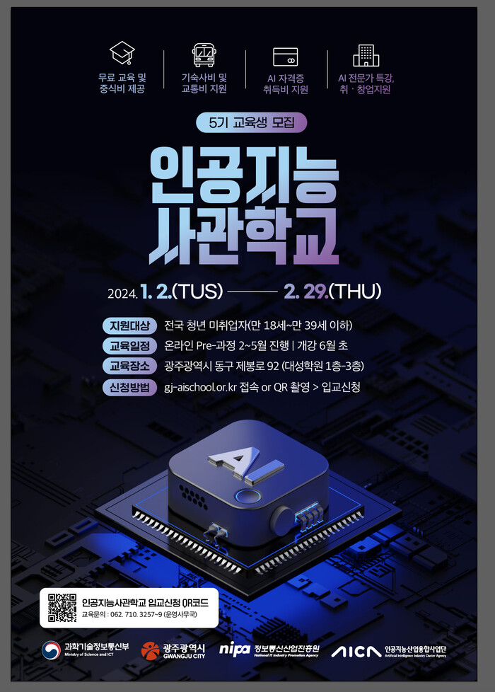 | ▲ 인공지능사관학교 5기 교육생 모집 포스터 / 광주광역시 제공 |