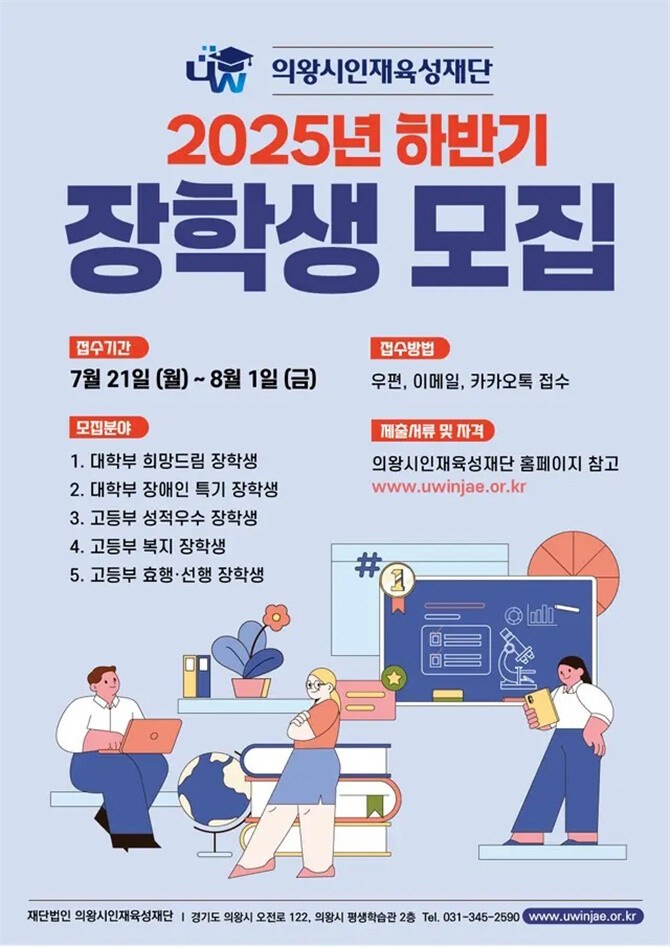 | ▲ 의왕시인재육성재단은 2025년 하반기 장학생 모집 안내 포스터 /자료제공=의왕시 |