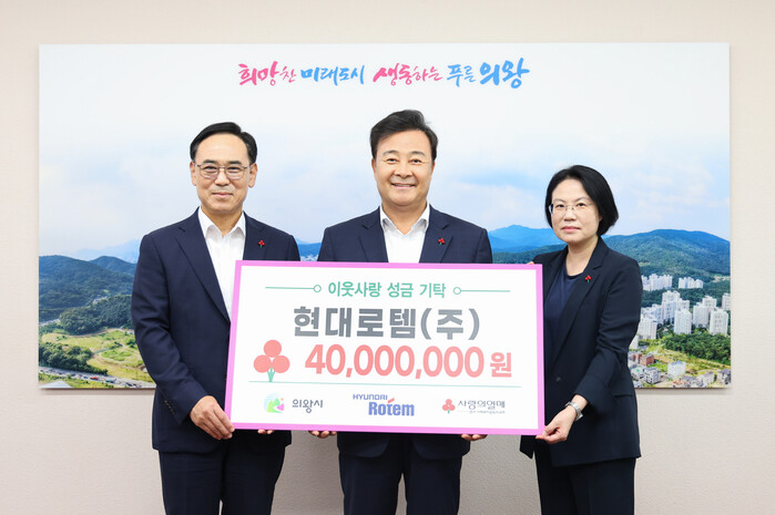 [의왕=송윤근 기자] 경기 의왕시(시장 김성제)는 9일 현대로템(대표이사 이용배)으로부터 지역사회 취약계층을 위한 후원금 4,000만 원을 전달받았다고 밝혔다.