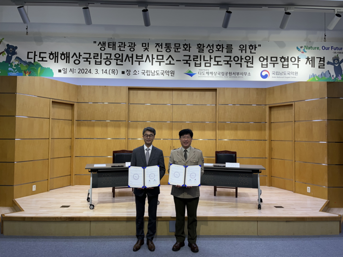 [목포=황승순 기자]국립공원공단 다도해해상국립공원서부사무소(소장 이전웅)는 3월 14일 국립남도국악원(원장 명현)과 생태관광 활성화를 위한 업무협약을 체결했다.