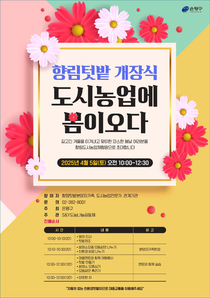 김미경 은평구청장은 “텃밭에서의 농사 체험은 단순히 농작물을 기르는 과정만이 아니라 자연에 대한 이해를 높이고, 긍정적인 정서를 함양하는 귀중한 시간이 될 것이다”며 “이번 행사에서 심은 모종과 씨앗이 단순한 농작물이 아니라 가족 간의 행복과 힐링의 결정체가 되길 기원한다”고 전했다.