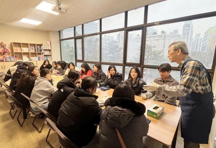 | 심장박물관 서정욱 관장(오른쪽)이 학생들을 대상으로 설명을 하고 있다. [사진=세종병원] |