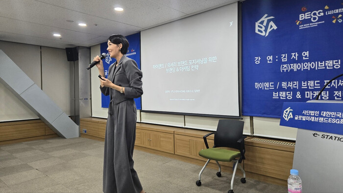 이날 강연은 럭셔리 브랜드 전문가인 (주)제이와이브랜딩 김자연 대표이사가 맡아 '하이엔드/럭셔리 브랜드 포지셔닝을 위한 브랜딩&마케팅 전략'을 주제로 강연을 진행했다.