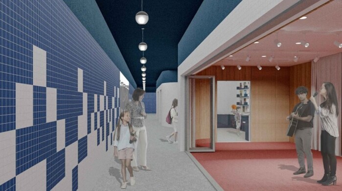 공간구조를 살펴보면 먼저, 지상 진입부는 차도 위에서도 눈에 띄는 원색의 벽체로 주변환경과 조화로운 곡선형으로 디자인된다. 또, 지하보도 초입에 조성되는 ‘뮤직펍’에서는 음악감상과 전시, 음악 쉼터, 공연 등 다양한 이벤트 공간으로 활용될 예정이다.
