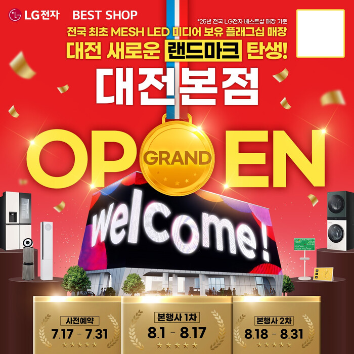 LG전자 베스트샵 대전본점은 전국 최초 MESH LED 미디어를 보유한 플래그십 매장(25년 전국 LG전자 베스트샵 매장 기준)으로 새로운 랜드마크가 될 것으로 기대되고 있다.