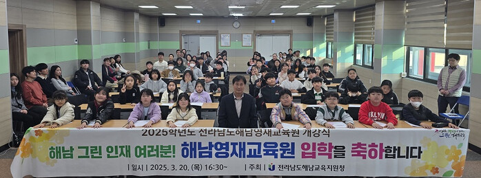 이자영 교육장은 학생들에게 전하는 당부의 말에서 “먼저 해남영재교육원에 입학한 학생들에게 축하의 말씀을 전한다. 우리 사회가 인공지능 시대로 들어서면서 그 기술을 개발하고 상용화하는데 아이들이 창의성을 발휘하고 문제를 해결할 수 있는 능력을 기를 수 있어야 한다. 앞으로 우리 영재교육원 학생들이 미래사회의 주인공이 돼 달라”고 말했다.