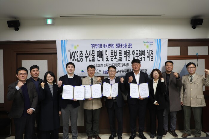 [목포=황승순 기자]국립공원공단 다도해해상국립공원서부사무소(소장 문광선)는 다도해해상국립공원 내 지속가능한 양식을 통해 ASC 국제인증을 받은 친환경 수산물의 판로 확보 및 안정적인 생산체계 구축을 위한 공단-진도군-(주)올가홀푸드-ASC인증 양식어가와 업무협약을 11월 23일 다도해해상국립공원서부사무소에서체결했다고 밝혔다.