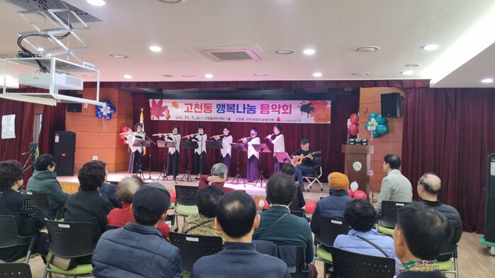 [의왕=송윤근 기자] 경기 의왕시 고천동지역사회보장협의체(민간위원장 손성기)는 지난 1일 고천동 주민센터 대강당에서 독거노인, 장애인, 수급자 등 취약계층 50명을 초청하여 ‘고천동 행복 나눔 음악회’를 개최했다.