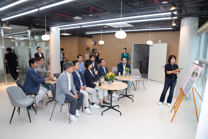 다음으로, 지난 4월 30일에 개관한 구미청년상상마루를 방문하여, 입주 작가들의 작업 공간과 공동 휴게공간 등을 보고 입주 작가와 소통하는 시간을 가졌다.