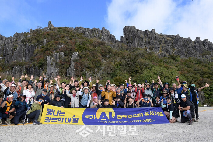 정상에 도착한 시민들은 저마다의 방식으로 특별한 순간을 기념했다. 특히 강기정 광주시장을 비롯한 100여 명의 시민들은 국가 AI 컴퓨팅센터 광주 유치를 한마음으로 염원했다.
