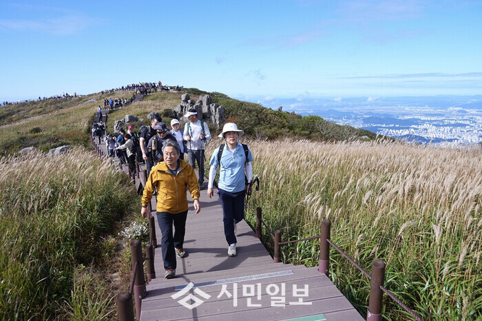 [광주=정찬남 기자] 추석 연휴 마지막 날인 9일 광주시민들은 특별한 선물을 받았다. 단 하루만 허락된 무등산 정상 개방에 탐방객 4000여 명의 발걸음이 이어졌다. 짙어지는 가을의 정취 속, 무등산은 시민들의 염원으로 더욱 뜨겁게 타올랐다.