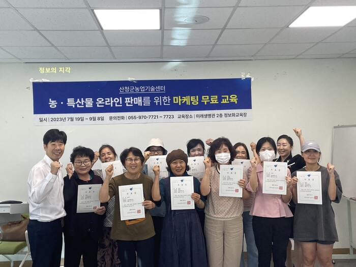 산청군농업기술센터 관계자는 “바쁜 일과와 더운 날씨 속에서도 교육과정에 열의를 보여준 수료생들에게 박수를 보낸다”며 “이번 교육이 농업인 역량 강화에 실질적인 도움이 돼 농가 소득증대로 이어지길 기대한다”고 말했다.