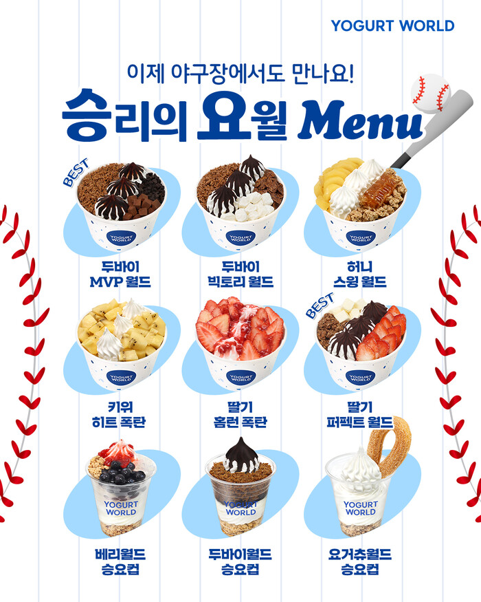 요거트월드는 개막전에 맞춰 오는 22일에는 수원 KT위즈파크, 28일에는 서울 고척스카이돔과 창원 NC파크에 각각 입점할 예정이다.