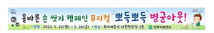 최근 기온 상승과 야외 활동 증가로 인해 수인성·식품매개 감염병 등이 급격하게 늘고 있어 올바른 손 씻기가 중요한 만큼, 이번 공연을 통해 어린이들이 올바른 손 씻기 습관을 형성하여 감염병을 예방하는데 도움이 될 것으로 기대한다.