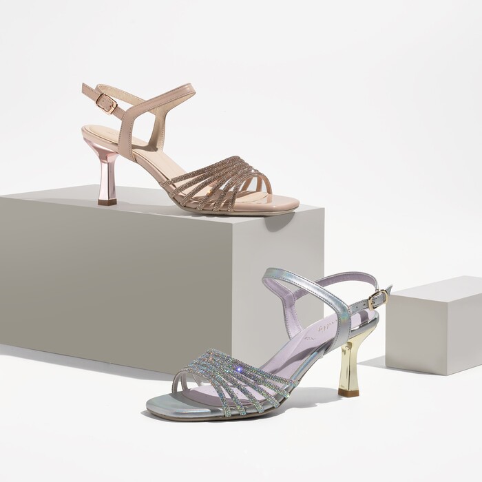 조형미를 고려하여 디자인된 메탈릭굽 매치로 여성 다리 라인에 맵시를 더해주며 화사함과 고급스러움을 더해준다.