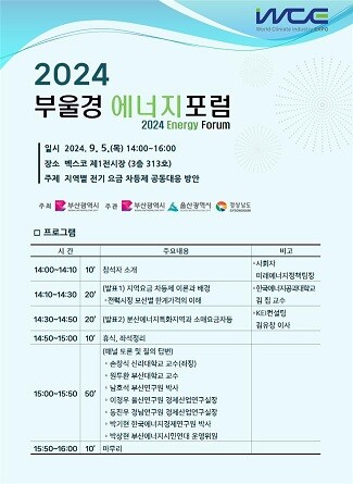 이번 포럼은 부울경 초광역경제동맹의 일환으로, '지역별 전기요금 차등제'에 대한 이해도를 높이고, 에너지분권 실현 등 지역경제 활성화를 위한 정책방향을 모색, 공론화하고자 마련됐다. 특히, '2024 기후산업국제박람회(WCE)'와 연계 개최해 상승(시너지)효과를 도모한다.