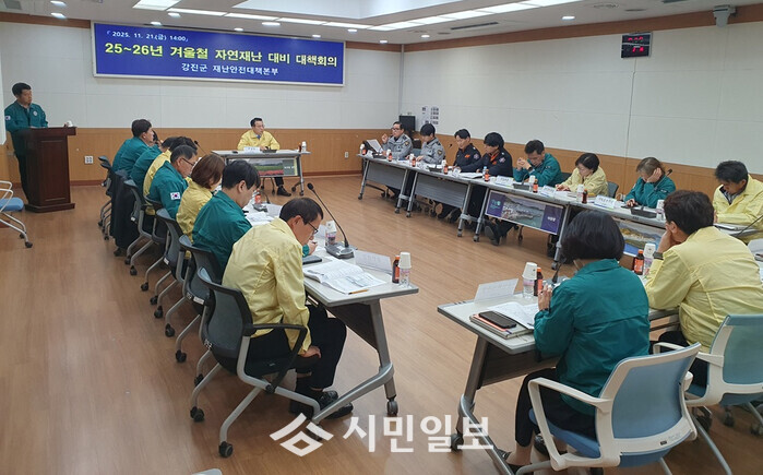 이에 따라 군은 지난 21일 본청 소회의실에서 강진군 재난안전대책본부 주관 ‘25년~ ’26년 겨울철 자연재난 대비 관계기관 및 관련부서 대책 회의를 개최했다.