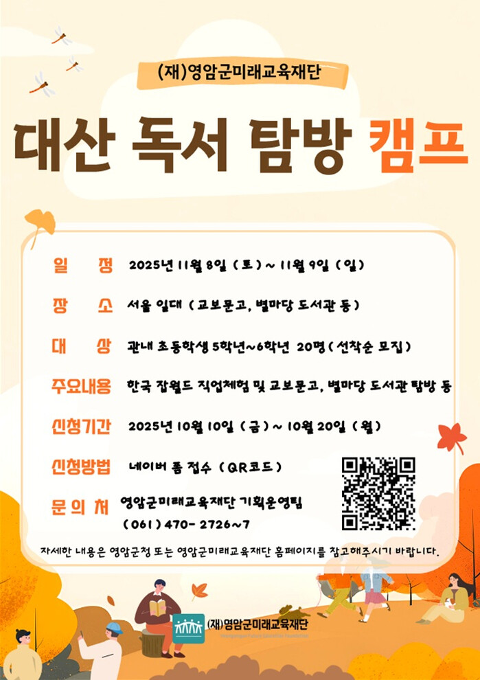 | ▲ 영암군미래교육재단 대산 독서 캠프 안내 이미지 / 출처 영암군 |