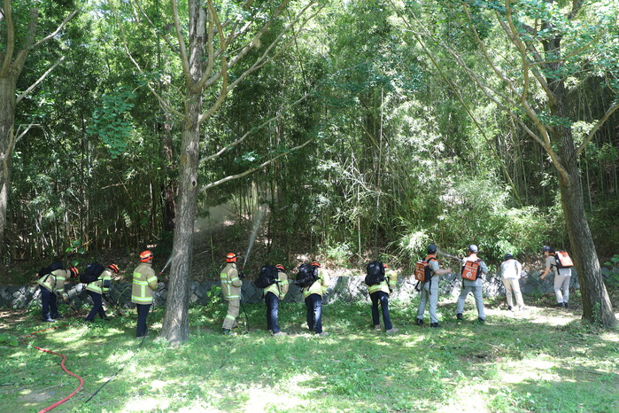 임준형 구미소방서장은 “목조문화재는 대부분 산림과 인접하기 때문에 산불로 크게 연소 확대 될 수 있고, 지리적 요인으로 신속한 대응이 어렵다. 또, 화재 발생 시 단시간에 화재가 최성기에 도달하기 때문에 화재 예방이 최우선이다. 이번 훈련은 유관기관 공조체계 확립에 있어 중요한 훈련이다.”고 전했다.