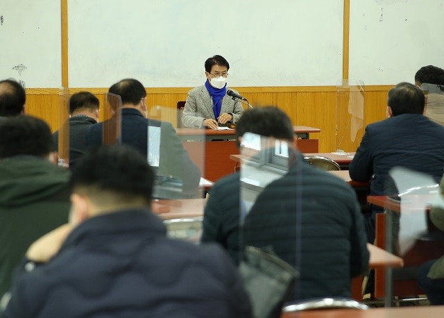 | ▲ 이승옥 강진군수가 지난 7일 강진군청 소회의실에서 "맥류 부산물 자원화 사업계획" 관계자 협의회를 주재하고 있다. / 사진=강진군 제공 |