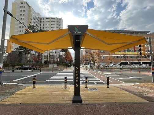 현재 양산시 관내 98개소에 설치되어 있는 그늘막을 신도시 건설로 인구가 폭증한 사송신도시 등 시민들의 쾌적하고 안전한 보행환경을 위해 추가로 그늘막 10여개를 설치할 예정이다.