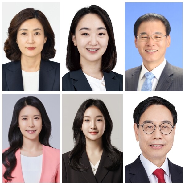 | ▲ (왼쪽 상단부터 시계방향으로) 김민주, 신예진, 이윤재, 주덕성, 전유정, 이은경 의원.(사진=중랑구의회 제공) |