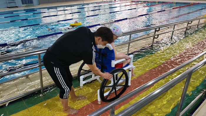 이날 점검은 장애인들이 자주 이용하는 수영장 이동식 수중리프트, 휠체어 등에 대하여 장애인 이용고객과 해동이스포츠센터 직원 합동점검이며 장애인 편의장비 및 환경 등 여러 분야에서 관리가 잘되고 있으나 장애인 주차장 차선도색 부분이 지적되었다.