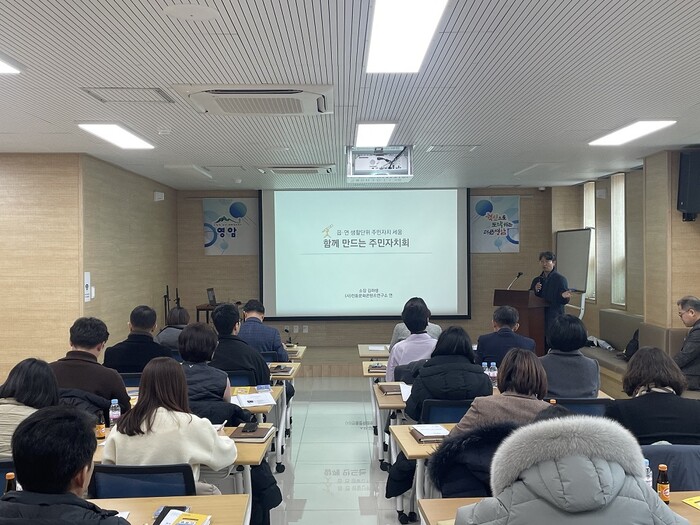 11개 읍·면장과 총무팀장 등 30여 명이 참석한 이번 교육은, 주민의 자치활동을 돕기 위해 관련 업무 담당 공직자들이 먼저 배우는 자리로 마련됐다.