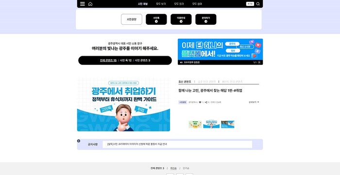 | ▲ 광주광역시 시민채널 시민광장 페이지 이미지 / 광주광역시 제공 |